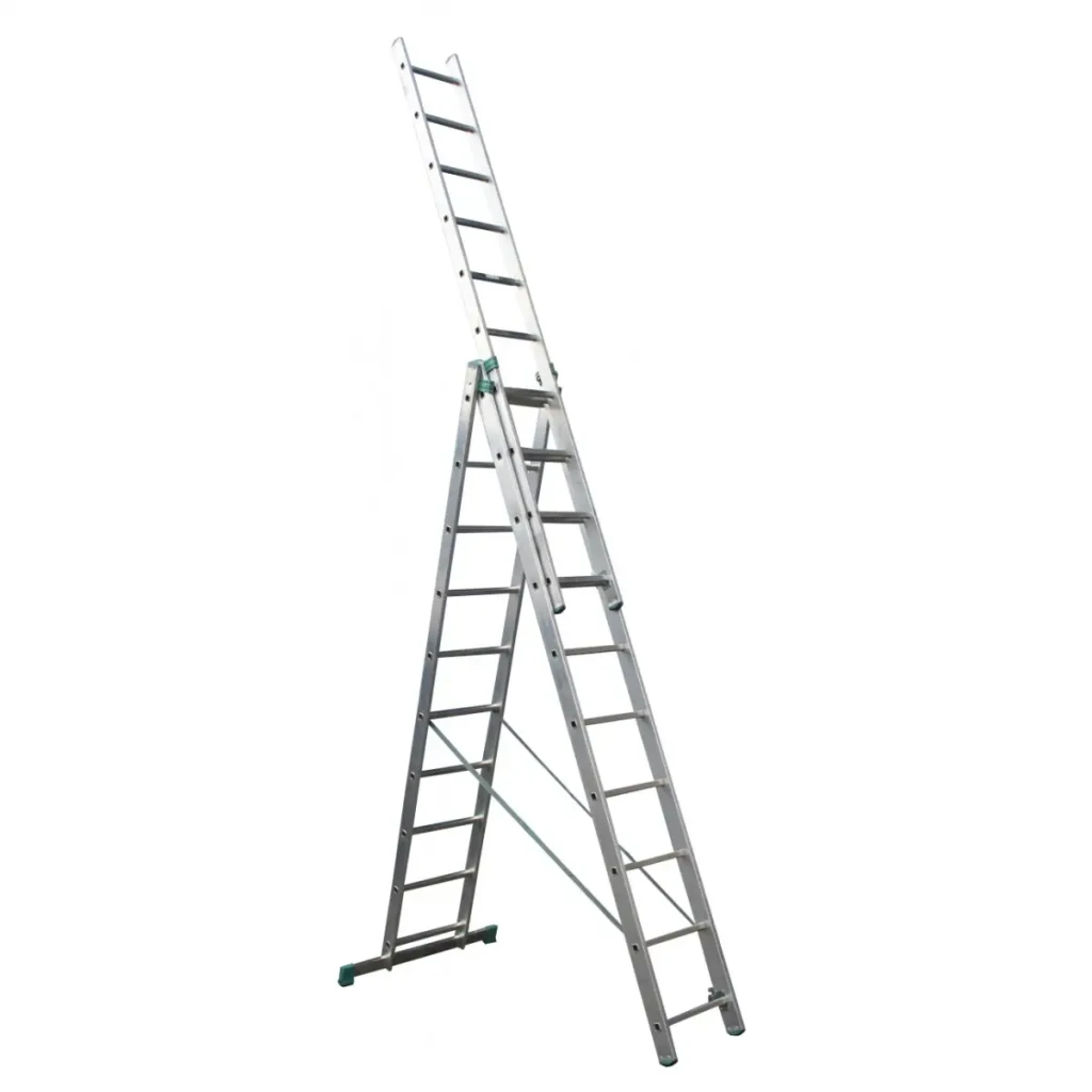 Трисекційна універсальна драбина ITOSS 7610 — багатофункціональний інструмент для роботи на висоті. Завдяки конструкції з трьох частин її можна використовувати як приставну, розкладну або у формі стійкої опори.