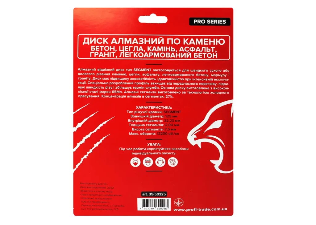 Інформація Круг алмазний відрізний по каменю RED CUT Segment 125x22,23мм