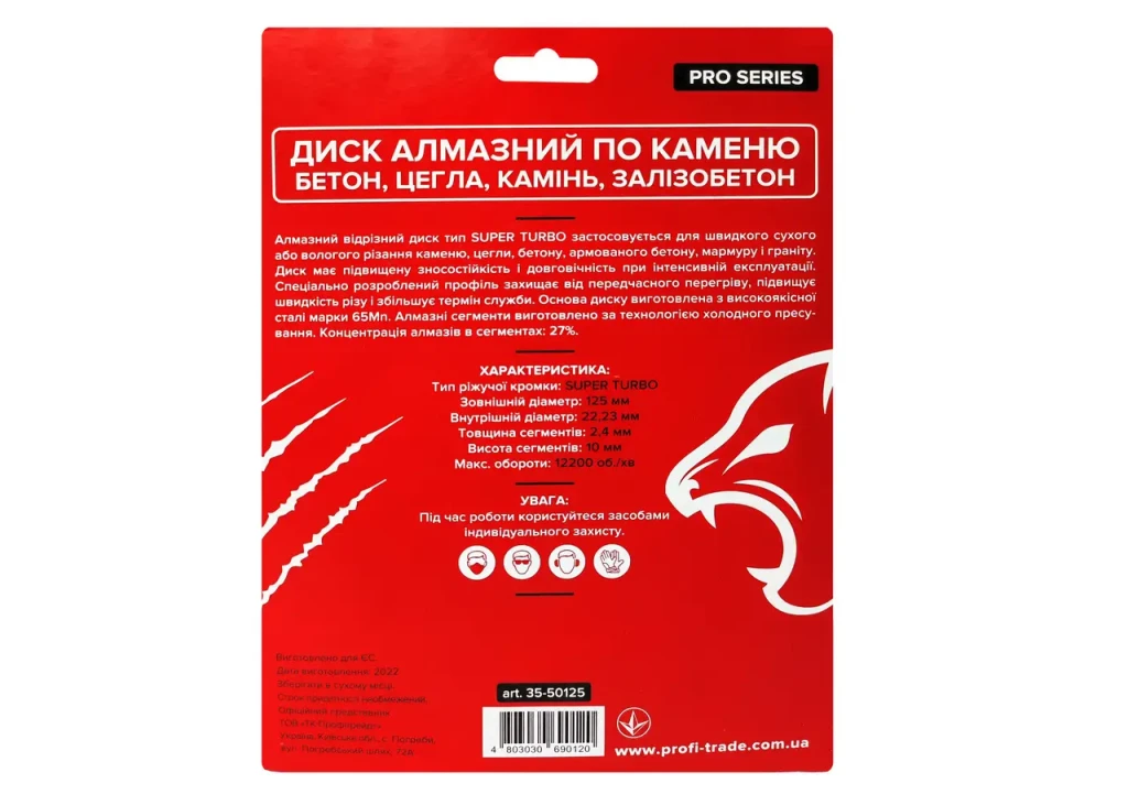Інформація Круг алмазний відрізний по каменю RED CUT Super Turbo 125x22,23 мм