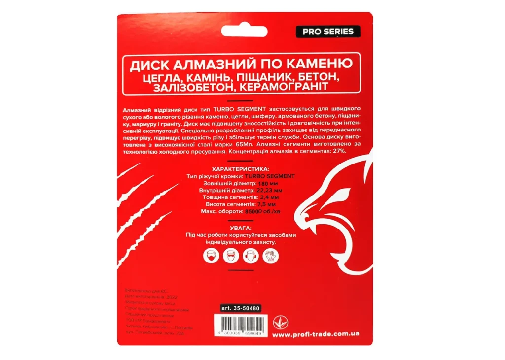 Інформація Круг алмазний відрізний по каменю RED CUT Turbo Segment 180х22,23 мм