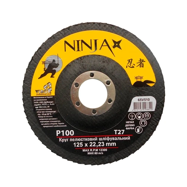 Інформація Круг пелюстковий шліфувальний NINJA TM VIROK : Т27, 125 х 22 мм, Р100