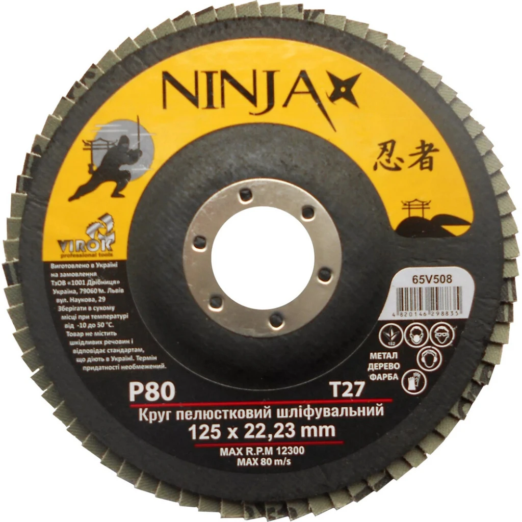 Інформація Круг пелюстковий шліфувальний NINJA TM VIROK : Т27, 125 х 22 мм, Р80