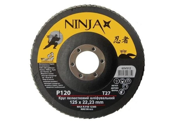 Інформація Круг пелюстковий VIROK шліфувальний NINJA: Т27, 125 х 22 мм, Р120