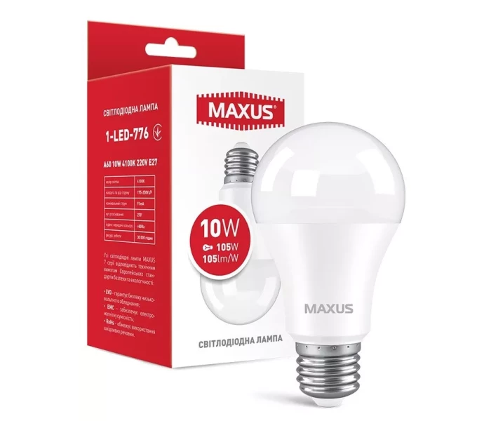 Купити лампу світлодіодну MAXUS A60 10W 4100K 220V E27 (1-LED-776) Ви можете, оформивши замовлення у нас на сайті, а також за телефоном гарячої лінії.