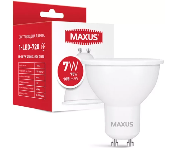 Купити лампу світлодіодну MAXUS MR16 7W 4100K 220V GU10 (1-LED-720) Ви можете, оформивши замовлення у нас на сайті, а також за телефоном гарячої лінії.