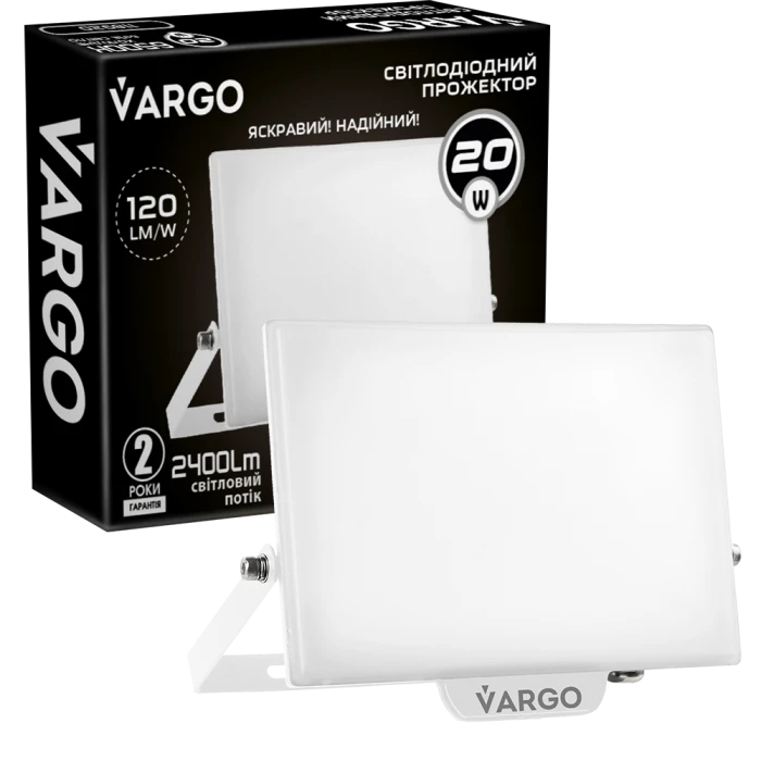 - Прожектор LED VARGO Premium 20W 1200Lm 120Lm/w IC Driver білий
