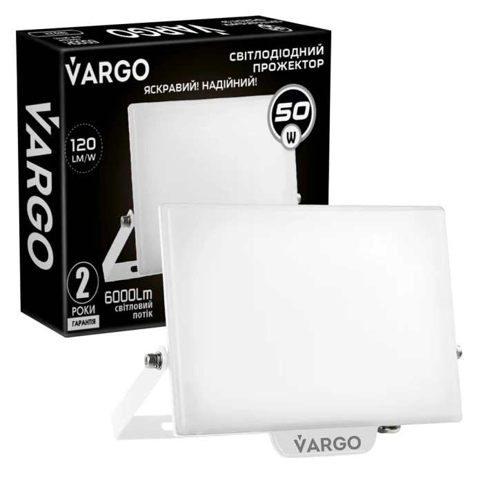 - Прожектор LED VARGO Premium 50W 1200Lm 120Lm/w IC Driver білий