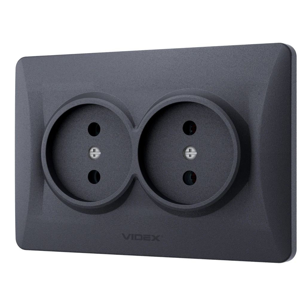 Фото Розетка VIDEX BINERA 2-на чорний графіт (VF-BNSК2-BG)