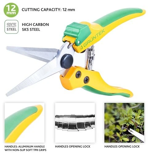 Секатор GRUNTEK Colibri Long 195 мм, реза 12 мм.