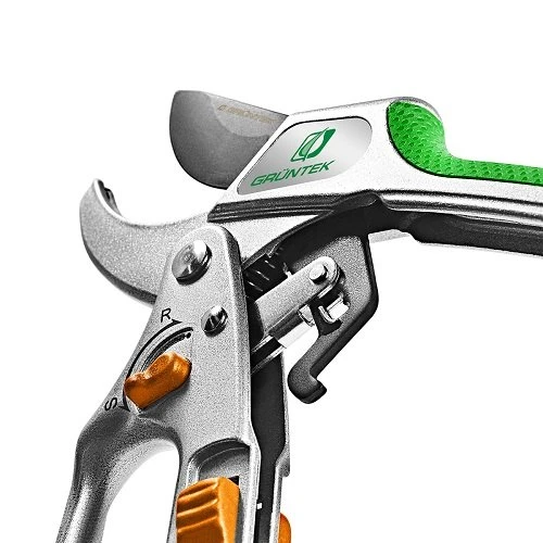 Секатор Kakadu создан для универсального использования благодаря тому, что способен отрезать ветки толщиной до 24 мм. Инструмент оборудован трещоточным механизмом, который обеспечивает 2 режима работы: