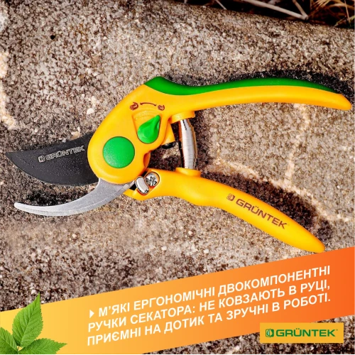 Секатор Gruntek Flamingo для аккуратной обрезки зеленых веток, кустов, лозы, молодых побегов и цветов.