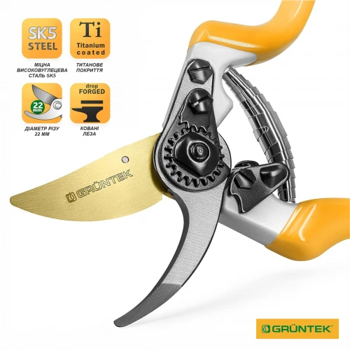 Секатор GRUNTEK Z-25 Professional 215мм d среза 22мм с наковаленкой
