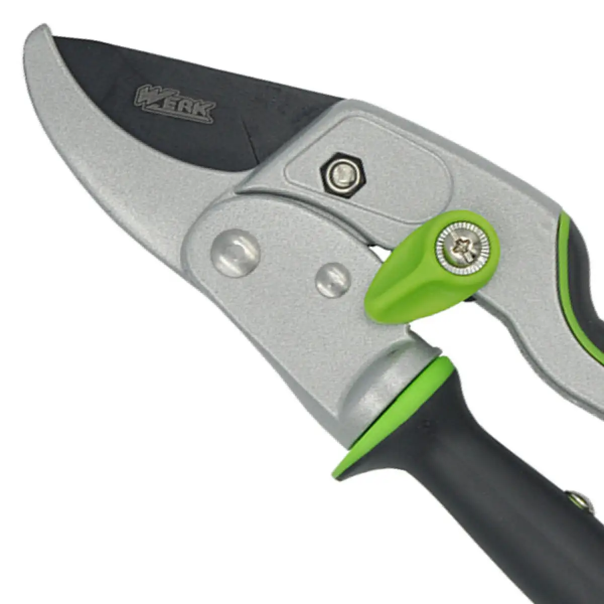 - Секатор садовий WERK 215мм з храповим механізмом і поворотною ручкою