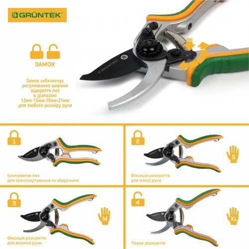 Секатор GRUNTEK Taube 200мм d16мм - призначений для обрізки квітів, живих гілок діаметром до 16 мм. Має низку переваг, серед яких:
