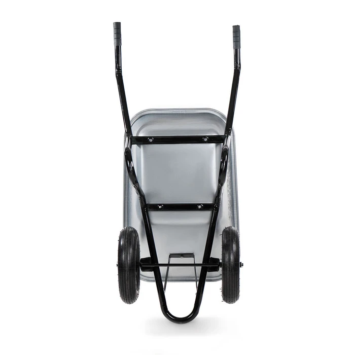Жорсткість виробів багато в чому визначається товщиною металу. Правильно сконструйований кузов максимально знижує фізичне навантаження при роботі. Трапециевидная форма без швів, плоске квадратної конфігурації дно і помітно скошена передня частина — подібна компоновка не випадкова. У таку тачку зручно завантажувати і сипучі, і великогабаритні матеріали навіть вище країв. До того ж на плоскій поверхні вміщується значно більше предметів правильної геометричної форми, будь то брус, цегла, бетонні блоки і т.д. (Особливо, якщо розкласти їх рівними рядами). Нарешті, скошений передній край сприяє оптимальному розподілу ваги — на руки доводиться від 10 до 30% навантаження, інше — на колесо.