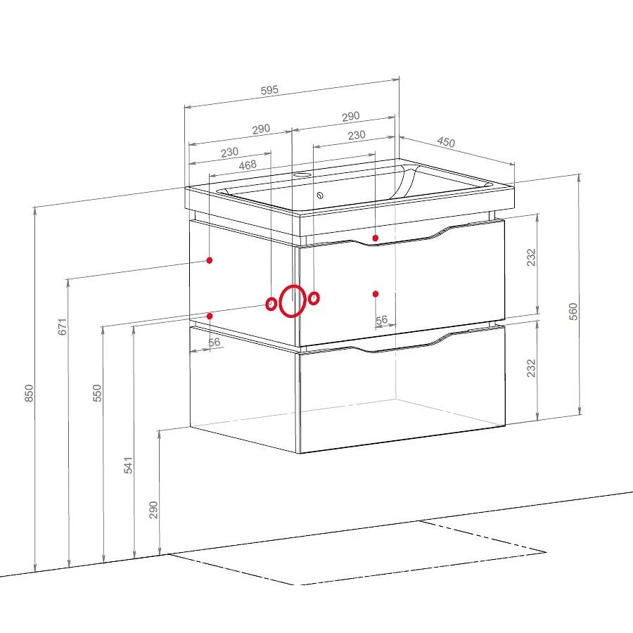 - Тумба "Венеція" (біла) 60 см з умивальником "Frame" (консольна)