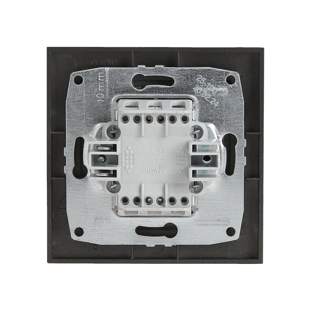 Одноклавішний вимикач Mono Electric DESPINA (графіт) — базовий настінний вимикач для керування одним освітлювальним приладом або групою. Має стриманий графітовий колір, підходить для сучасного інтер’єру та легко інтегрується в дизайн кімнати.