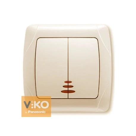 Вимикач двоклавішний з підсвічуванням внутрішній (монтується в підрозетник). Номінальний струм: 10А. Напруга: 230В. Матеріал: пластик. Країна виробник: Туреччина.
