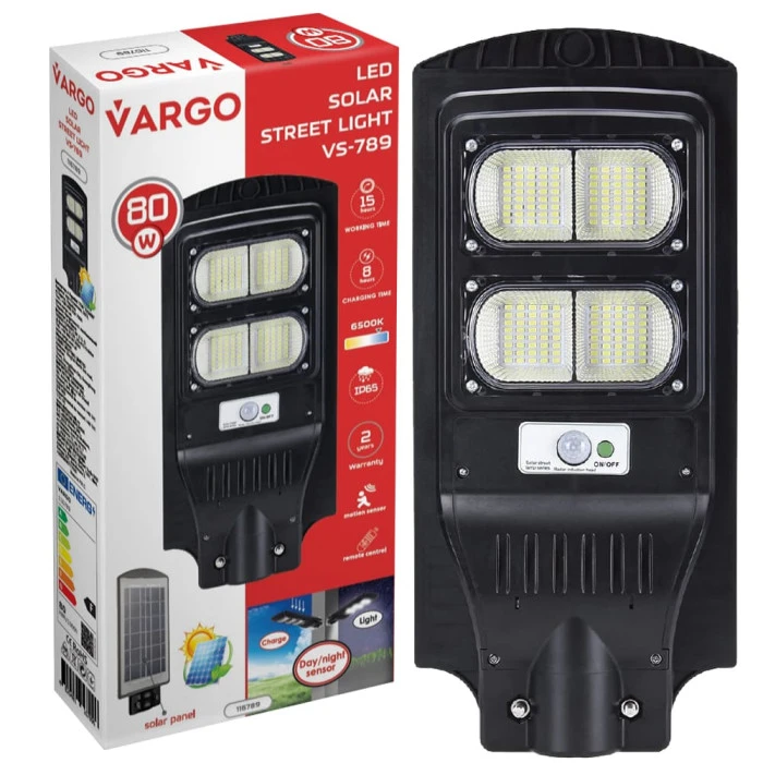 Інформація Вуличний св-к на сон.бат.LED 80W (датчик руху;день/ніч,пульт) VARGO