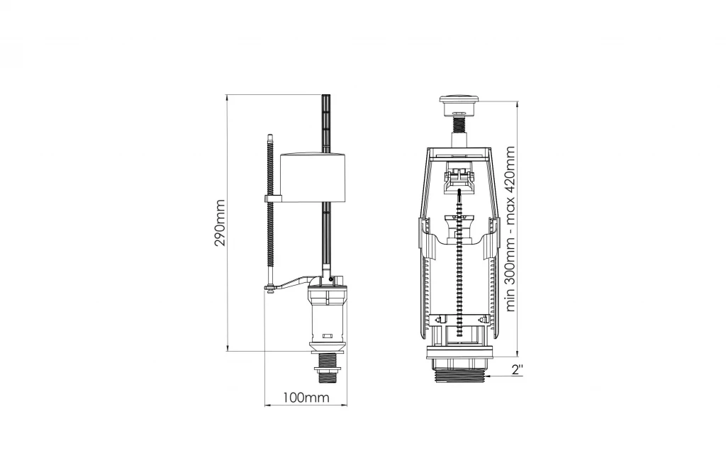 Характеристики Арматура для змивного бачка універсальна з клапаном нижньої подачі 4163N