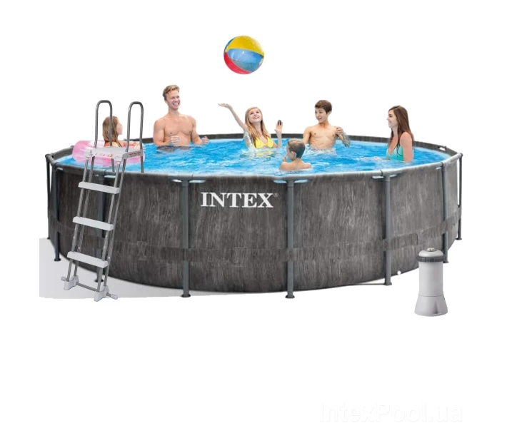 Інформація Басейн каркасний Intex 26742 NP, 16805л, 457х122см, насос-фільтр, драбина, тент