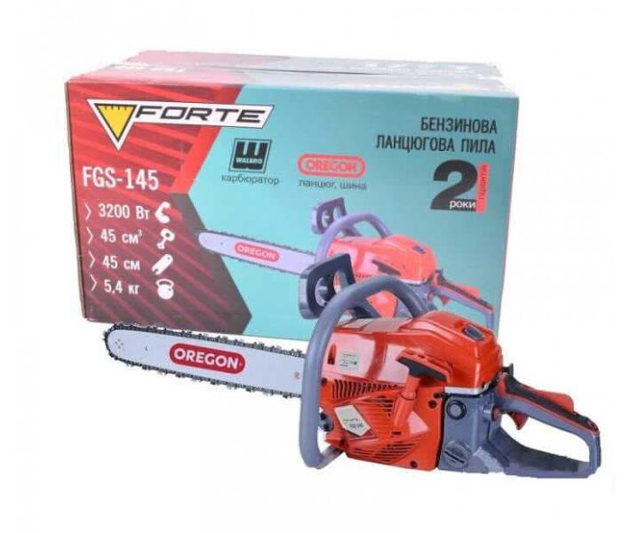 Бензопила ланцюгова FORTE FGS145 чудовий вибір для професійного та домашнього використання. Ця потужна та надійна бензопила призначена для ефективної обробки деревини. Модель оснащена двигуном потужністю 2200 Вт, що забезпечує високу продуктивність та точні результати різання. Завдяки 45сантиметровому штоку та ланцюгу з кроком 3/8 дюйма пила зможе впоратися з різними завданнями, будь то розпилювання дров чи вирубка дерев. Зручна система запуску робить роботу з пилою легкою та комфортною, а система змазки ланцюгу забезпечує його надійну роботу та тривалий термін служби. Компактний та ергономічний дизайн дозволяє зручно маневрувати пилою навіть в умовах обмеженого простору. FORTE FGS145 це інструмент, який допоможе вам швидко та якісно виконати роботу.