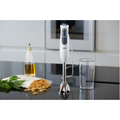 Блендер Braun MQ 3100 WH — надійний помічник на кухні, який поєднує в собі функціональність та стильний дизайн. Потужний двигун потужністю 600 Вт дозволяє легко подрібнювати, збивати та перемішувати різні інгредієнти для створення ідеальних страв. Завдяки унікальній технології PowerBell Plus вихрова насадка забезпечує ефективне перемішування без грудочок і збивання. Спеціальний режим турбо дає можливість збільшити швидкість роботи блендера для отримання швидших результатів. Насадка з нержавіючої сталі гарантує тривалий термін служби і легкість в догляді. Пластиковий тримач з зручною кнопкою управління дозволяє зручно використовувати блендер під час приготування їжі. Braun MQ 3100 WH ідеально підходить для приготування смузі, соусів, пюре та інших страв, пропонуючи виняткову якість та практичність.