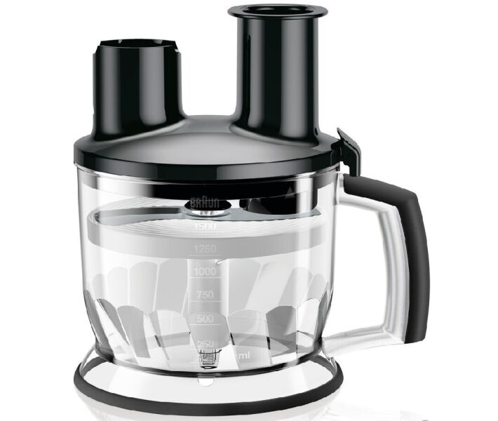 Braun MQ 7075 X BK можна купити за доступною ціною, при цьому допомогти собі на кухні по багатьом процесам, готувати свої улюблені страви швидше і якісніше. У комплектацію цього блендеру включають віночок для збивання, насадку для подрібнення, насадку для шинкування і мірну чашу «кухонний комбайн» на 1,5 літра.
