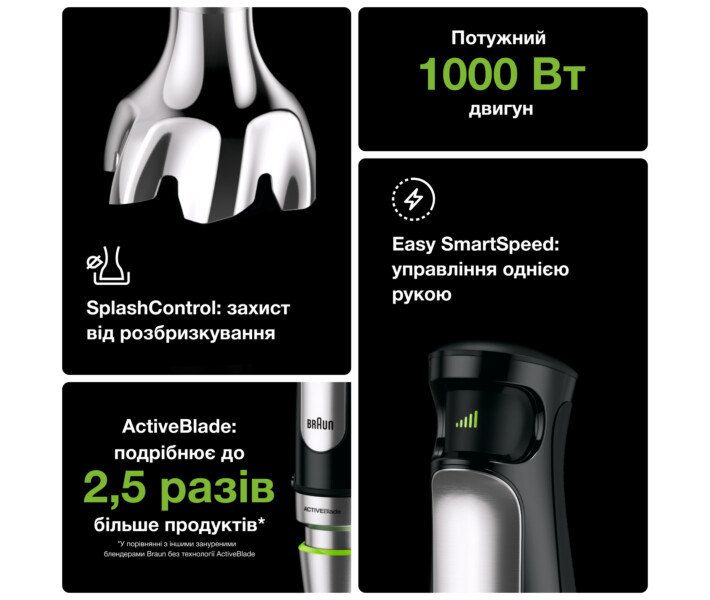 Блендер Braun MQ 7087 X BK це незамінний помічник на кухні, який полегшить вам підготовку різних страв. Він поєднує в собі стильний дизайн і високу якість матеріалів, що робить його надійним інструментом для приготування їжі. Завдяки своїй потужності та функціональності, цей блендер допоможе вам швидко і легко приготувати смузі, коктейлі, супи та інші страви. Кнопки управління пристроєм інтуїтивно зрозумілі й зручні у використанні. Крім того, компактні розміри блендера роблять його легким у зберіганні і економлять місце на вашій кухні. Дозвольте собі насолоджуватися чудовим смаком приготованої за допомогою цього блендера їжі!