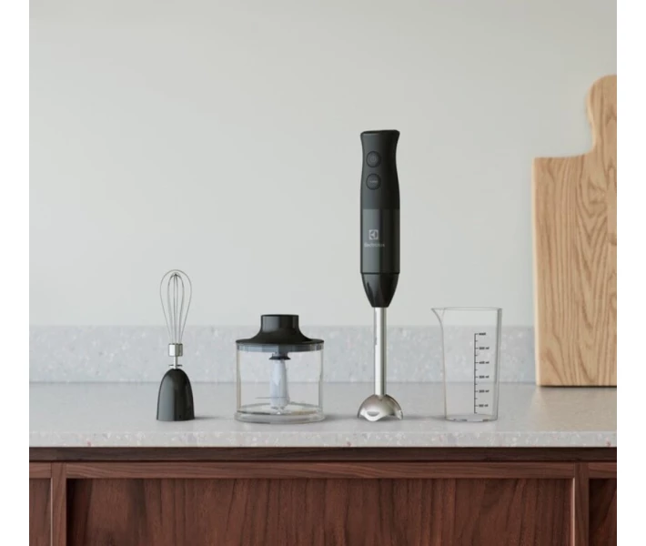 Ручний блендер Electrolux E4HB1-6GG зовні відображає сучасне розуміння компанії в сфері побутової техніки. Лаконічний корпус з матового чорного пластику має глянцеві вставки. Ергономічна форма зручно лягає в руку і не дає вам упустити його. Ви отримуєте чіткий контроль кожного руху.