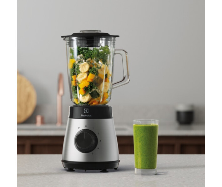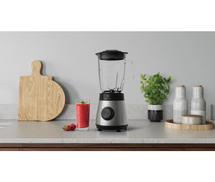 Настільний пристрій для подрібнення і змішування – це блендер Electrolux E4TB1-6ST. Сріблясто-чорний корпус виглядає солідно і викликає асоціації з професійною технікою. Варто сказати, що такі думки – не безпідставні. Підвищена потужність двигуна, особлива технологія подрібнення, а також гнучкість управління допоможуть вам отримати бажаний результат з мінімумом зусиль.