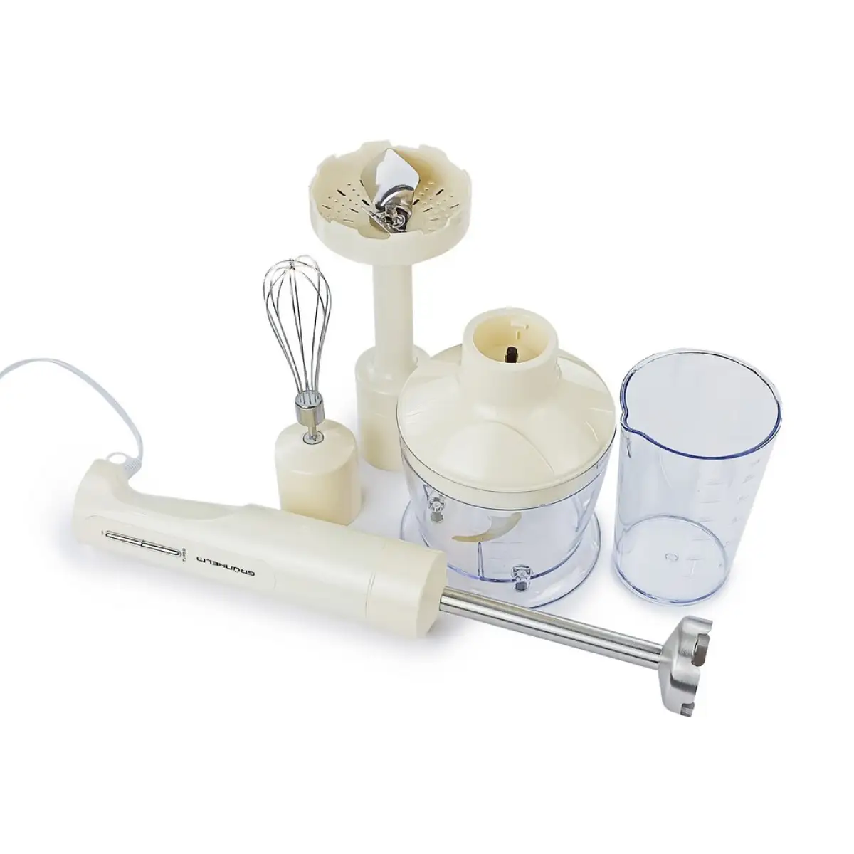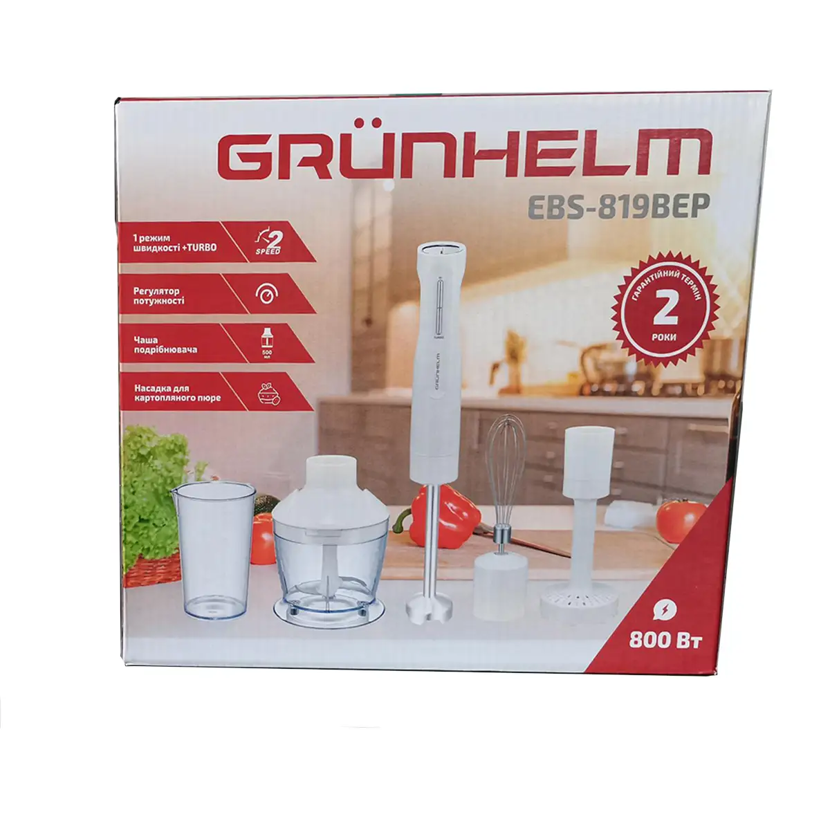 Блендерний набір EBS-819BEP - подрібнювач, блендер, міксер здатний виконувати широкий спектр завдань. Потужний блендер потужністю 800 Вт має 2 швидкості, що дозволяє обробляти практично будь-які інгредієнти, подрібнюючи їх до потрібної консистенції або ідеально однорідної маси. Завдяки набору насадок блендер дозволяє змішувати, збивати, робити пюре, молоти, рубати і багато іншого. Насадка блендера, ножі і міксерна насадка виконані з високоякісної сталі. Модель комплектується місткою чашею подрібнювача ємністю 500 мл мірним стаканом.