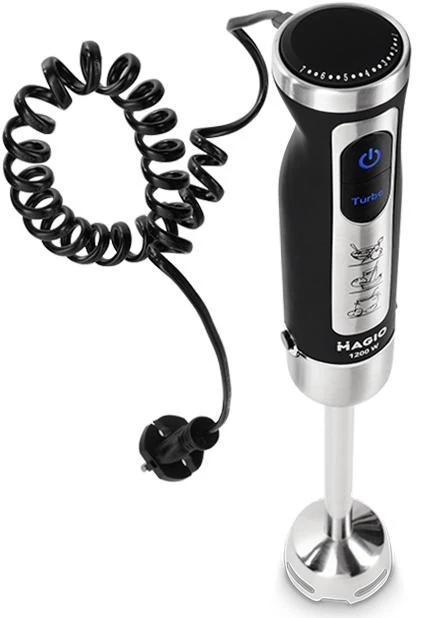 Ергономічне руків'я з покриттям SOFT TOUCH; Гнучкий спіралеподібний шнур для комфортного використання і зберігання; Ніжка та ножі блендера з неіржавкої сталі; Низький рівень шуму; Чаша подрібнювача з покриттям SOFT TOUCH