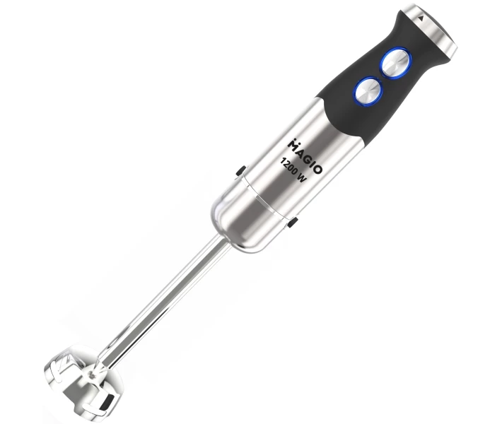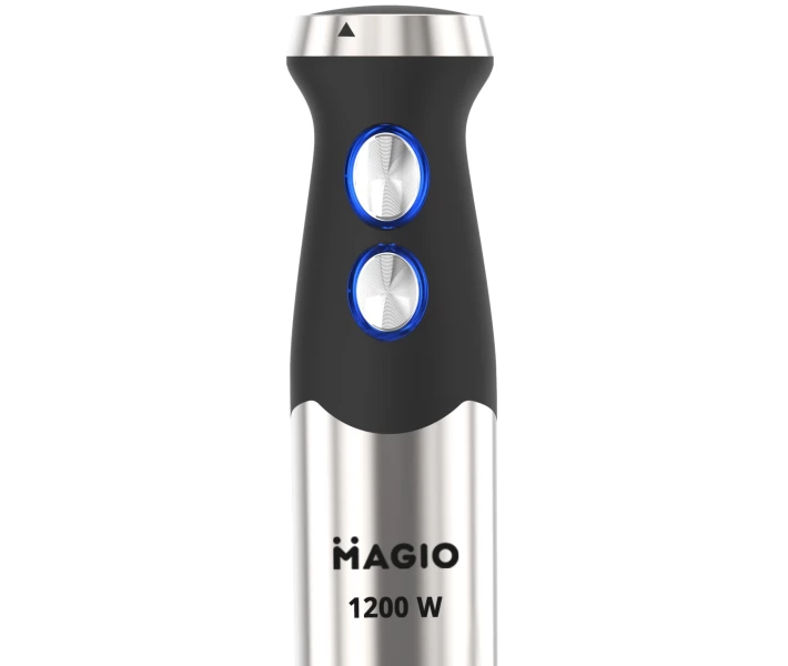 Блендерний набір MG-645 дозволить вам урізноманітнити ваше меню та приготувати новий кулінарний шедевр. Потужність блендера становить 1200 Вт, що забезпечує ефективну безшумну роботу протягом тривалого часу. Занурювальна частина виконана з нержавіючої сталі, а ніж з покриттям титану - запорука стійкості до зносу і довговічності. Ергономічна рукоятка із приємним покриттям SOFT TOUCH. Блендер може працювати на 13 швидкостях, що плавно перемикаються. Перемикач знаходиться на ручці приладу, що дуже зручно. У комплект входить віночок для збивання та пластикова мірна склянка об'ємом 600 мл. Ці властивості у поєднанні з компактним дизайном роблять блендер незамінним помічником на вашій кухні.