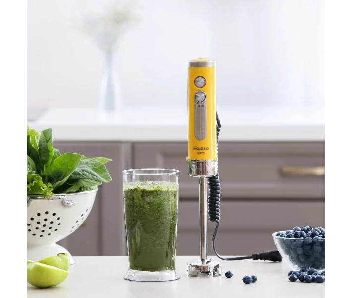 Блендер MG-646 дозволить вам урізноманітнити ваше меню та приготувати новий кулінарний шедевр. Потужність блендера становить 800 Вт, що забезпечує ефективну безшумну роботу протягом тривалого часу. Занурювальна частина виконана з нержавіючої сталі - запорука стійкості до зносу та довговічності. Блендер може працювати на 13 швидкостях, що плавно перемикаються. Перемикач знаходиться на ручці приладу, що дуже зручно. У комплект входить пластикова мірна склянка. Ці властивості у поєднанні з компактним дизайном роблять блендер незамінним помічником на вашій кухні.