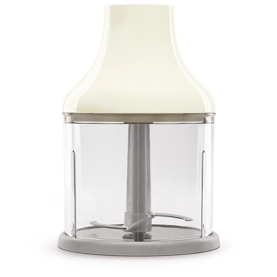 Блендер Smeg HBF03CREU – це поєднання італійського стилю, потужності та функціональності. Стильний кремовий корпус в ретро-дизайні 50-х років додає кухні елегантного вигляду, а потужний двигун на 700 Вт забезпечує ефективне подрібнення, змішування та збивання. Він має зручну ергономічну ручку, що забезпечує комфортне використання, а також спеціальні леза з нержавіючої сталі для однорідного подрібнення та змішування інгредієнтів. У комплекті передбачено мірну склянку об'ємом 1.4 літра, міні-подрібнювач та віночик для збивання, що робить блендер універсальним помічником для приготування різних страв – від смузі до супів-пюре. Регулятор швидкості дозволяє обрати оптимальний режим для кожного завдання, а турбо режим забезпечує особливу точність обробки інгредієнтів.