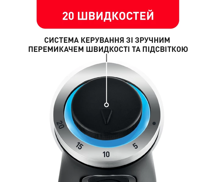 Знімна ніжка з міцного металу, з ножами з нержавіючої сталі, гарантують вам комфортну роботу. Ви можете легко приготувати весь асортимент страв в експрес-режимі, що дозволяє використовувати високопродуктивний двигун потужністю 1000 Вт, що повністю контролюється, з 20 різними швидкостями, керований без зупинки блендера, з інтуїтивно зрозумілою та простою у використанні ручкою.
