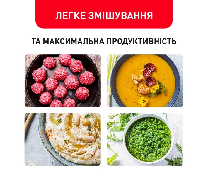 Склянка об'ємом 800 мл забезпечує повну зручність змішування інгредієнтів.