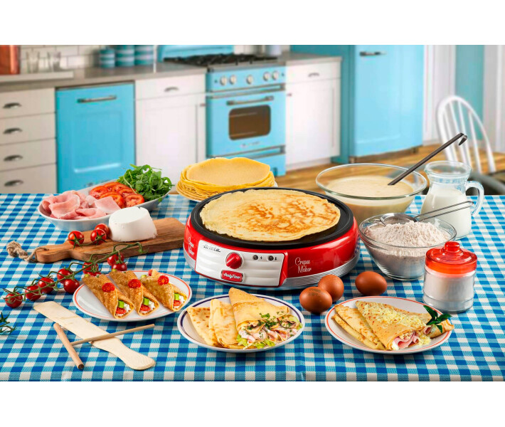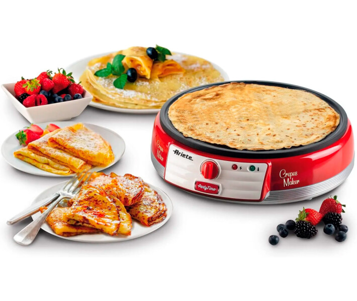 За допомогою млинниці Ariete Party Time ви зможете подати до столу солодкі та солоні млинці, оладки, а також млинці та обгортки з начинкою. Дайте волю своїй уяві та випробувайте себе, приготувавши безліч смачних та цікавих рецептів!