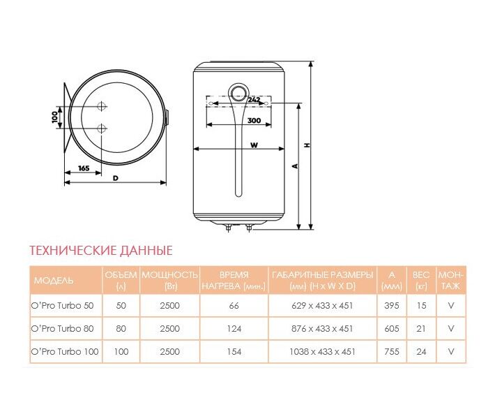 Характеристики Бойлер ATLANTIC O PRO TURBO VM 080 D400-2-В 2500W