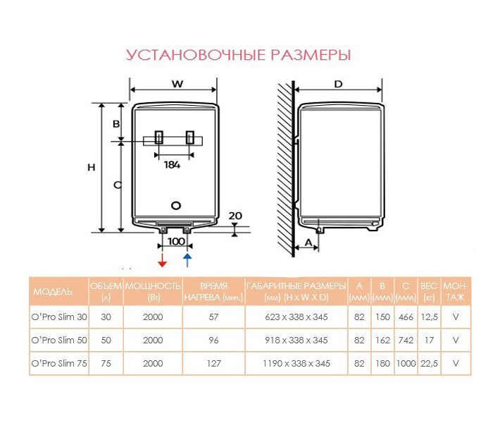 Характеристики Бойлер ATLANTIC O'Pro Slim PC50