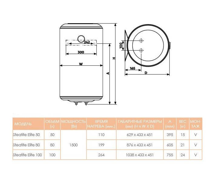 Характеристики Бойлер ATLANTIC STEATITE VM 080 D400-2-BC