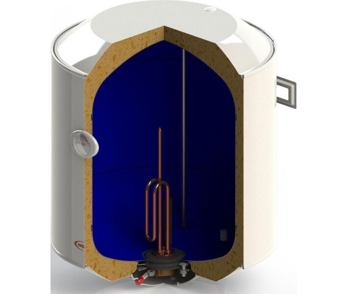 Компактний, вертикальний, циліндричний бак з високоякісного металу, що не піддається корозії, об'ємом 50 літрів забезпечить Вас і Вашу сім'ю достатнім запасом гарячої води. Завдяки покриттю в 2 шари спеціальної титанової емалі (французького виробництва) усередині металевого бака, вода тривалий час не остигає і зберігає свою високу температуру, а також захищає від корозії. Водонагрівач укомплектований теплоізоляцією, яка допомагає зберегти температуру води і позбавить Вас від надмірного споживання електричної енергії.