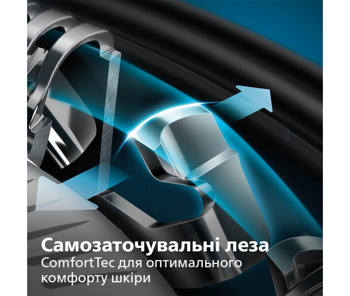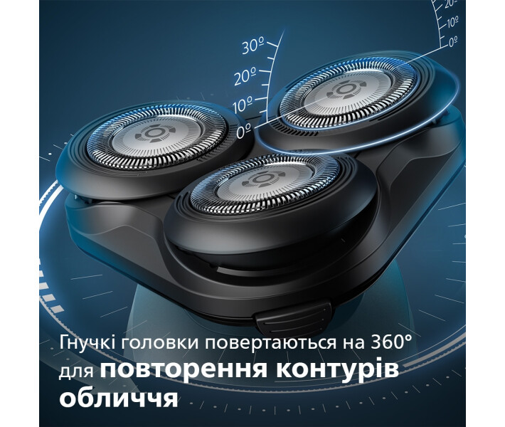 Швидка зарядка протягом 5 хвилин; Рухливі головки 360-D; Леза ComfortTech