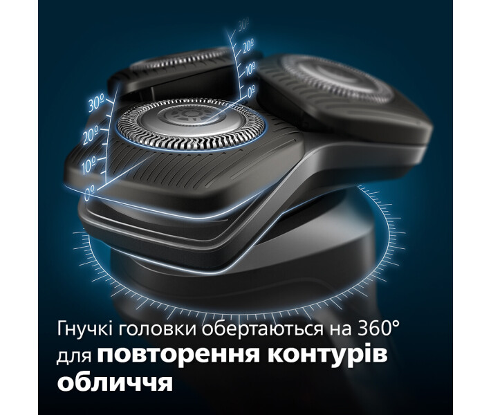 Повністю гнучкі головки обертаються на 360° для повторення контурів обличчя. Насолоджуйтеся оптимальним контактом зі шкірою для ретельного та комфортного гоління.