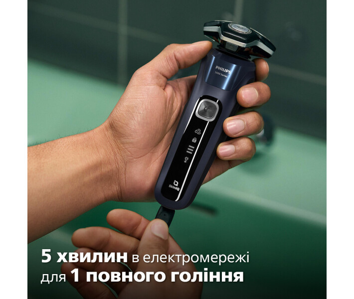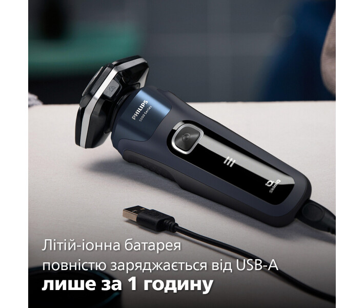 Заряджайте бритву повністю лише за 1 годину завдяки потужній та енергоефективній літій-іонній батареї. Поспішаєте? Під’єднайте бритву до електромережі на 5 хвилин для 1 повного гоління.
