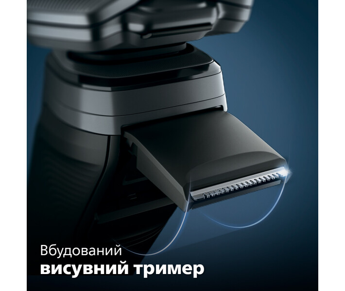 Доповніть вигляд за допомогою висувного точного тримера бритви. Він вбудований у корпус бритви і є ідеальним варіантом для догляду за вусами та підстригання бакенбардів.