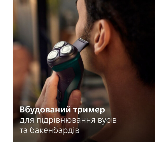 Підрівнюйте вуса та бакенбарди завдяки вбудованому тримеру та легко завершуйте свій образ.