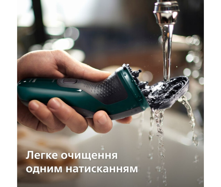 Мийте під проточною водою або голіться під душем. Клас водонепроникності IPX7 означає, що виріб можна занурювати у воду на глибину один метр до 30 хвилин.