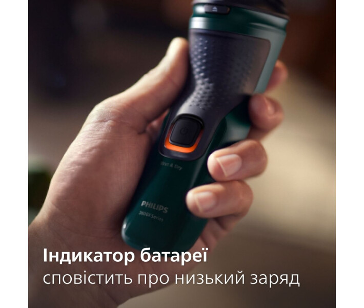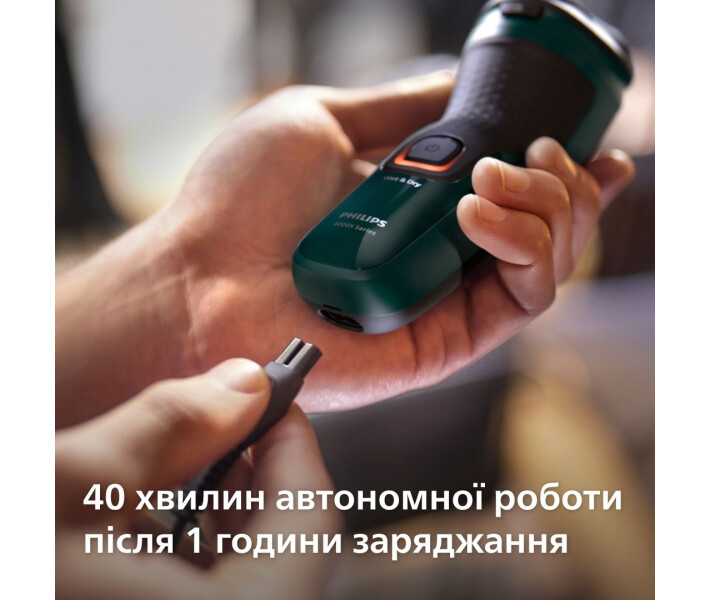 Надійна нікель-металогідридна батарея повністю заряджається лише за годину, і цього достатньо приблизно для 13 голінь. Поспішаєте? Під’єднайте бритву до електромережі на 5 хвилин для 1 гоління.
